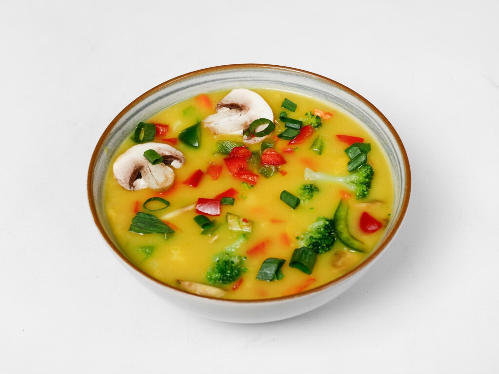 Propozycja bezpośrednio od naszego szefa kuchni – pomidorowo-cebulowe curry z dodatkiem podsmażonego sera paneer, brokułów, kurczaka, jagnięciny i krewetek podane z żółtym ryżem Basmati. Idealna pozycja,
