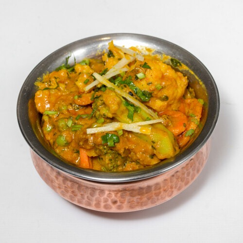 Potrawa tradycyjnie przyrządzana z jagnięciny, pomidorów i papryki, a bazą sosu Balti jest czosnek i cebula z dodatkiem kurkumy i garam masala. Charakterystyczny smak zawdzięcza kminkowi i chilli. Balti przygotowuje się i serwuje w naczyniu o tej samej nazwie, oryginalnie pochodzącego z terenów otaczających północno-zachodnią granicę Indii. Curry serdecznie polecane przez naszego szefa kuchni! -
